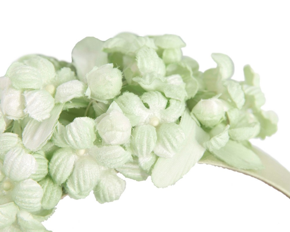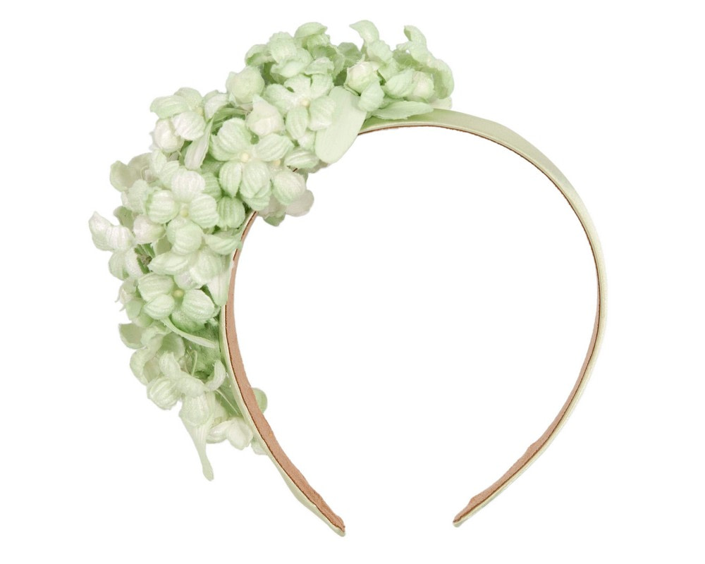 This charming mint green floral headband is a delightful accessory that adds a touch of whimsy and elegance to any ensemble. Featuring a cluster of delicate fabric forget-me-not flowers in mint green color, this headband exudes a soft, romantic appeal. Each flower is meticulously crafted, with attention to detail that highlights their natural beauty. The comfortable headband is wrapped in matching fabric, ensuring a secure and gentle fit for all-day wear. Perfect for racing carnivals, garden parties or any special occasion, this floral headband is a beautiful finishing touch to your look.