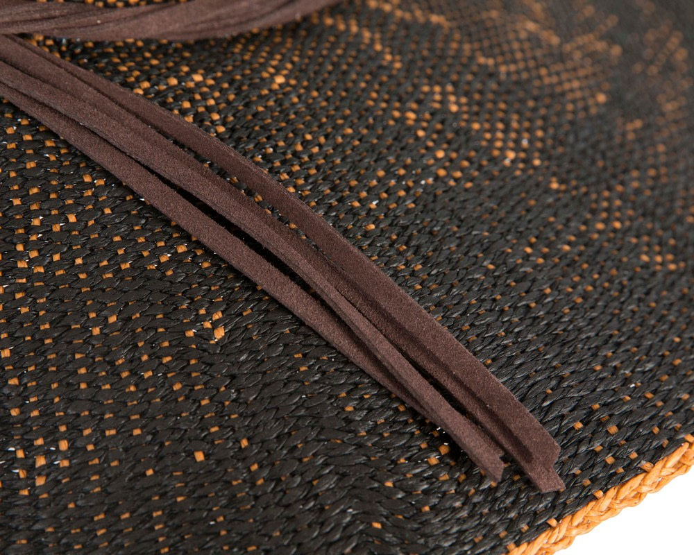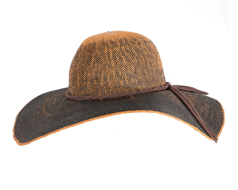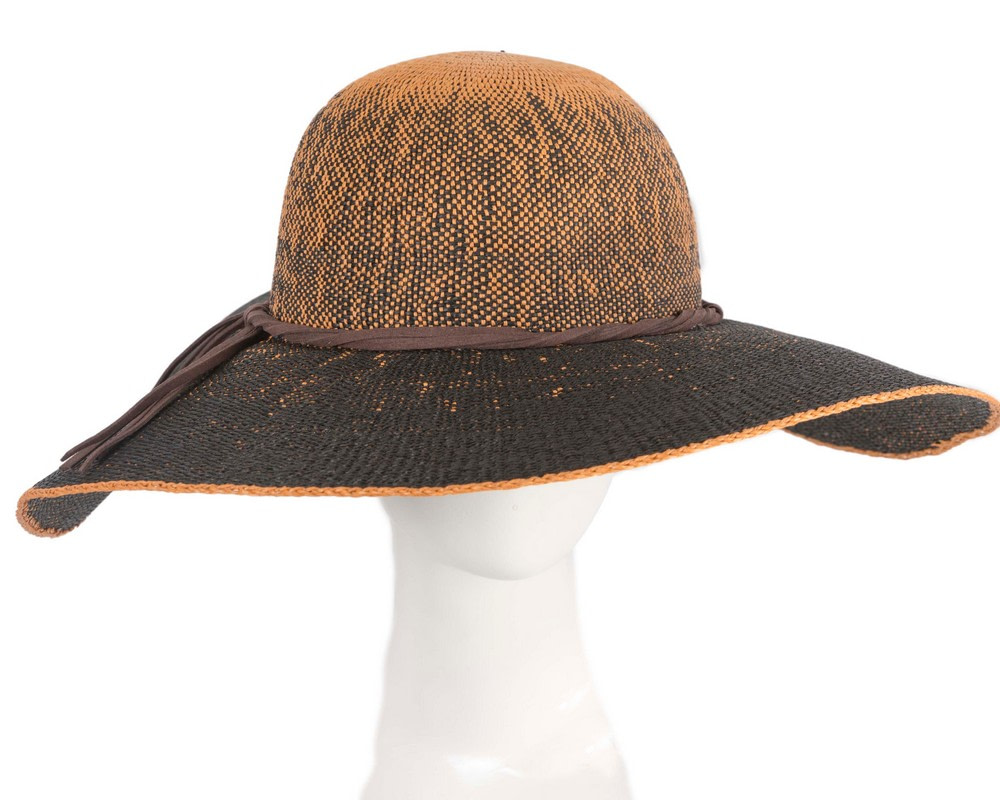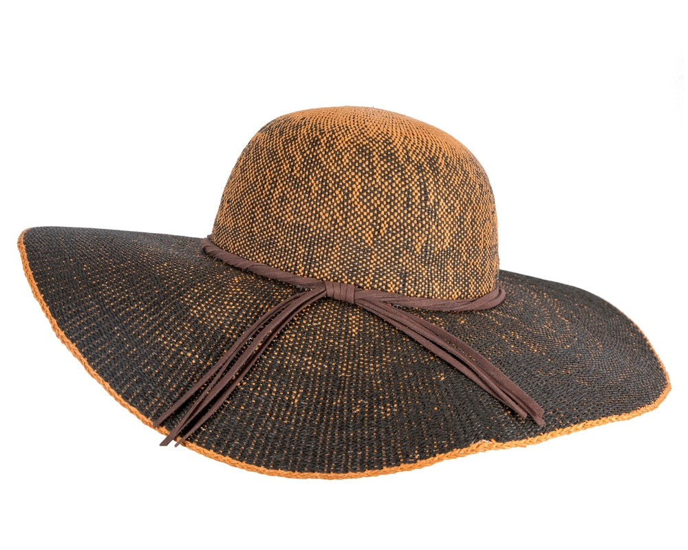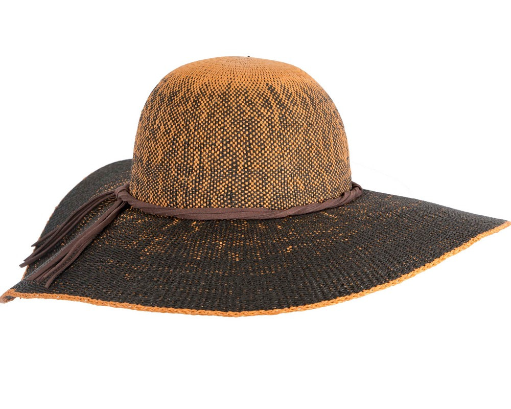 Soft wide brim ladies casual beach sun hat with unique multi-color pattern.