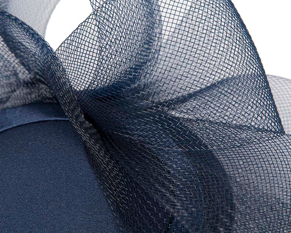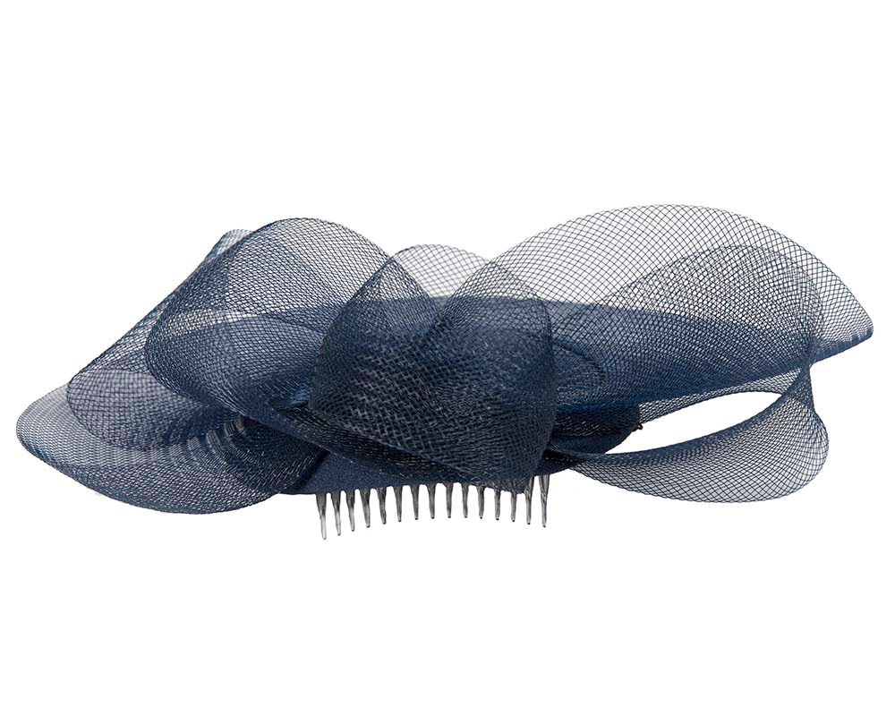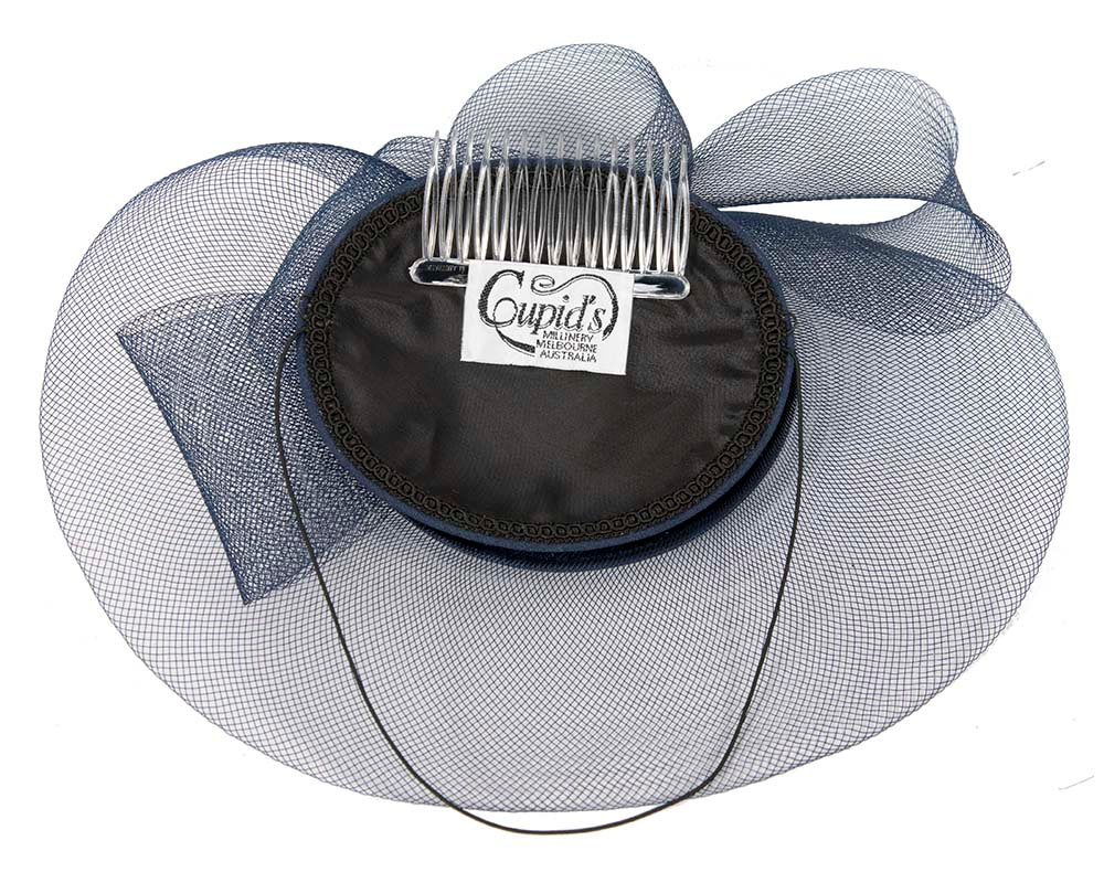 This gorgeous navy headpiece from our beautiful range of cocktail hats, headpieces and special occasion hats is custom made from luxurious fabric with crinoline brim and with comb for comfortable wearing. This hat is ideal for those special occasions such as weddings, Melbourne Cup and Ascot.