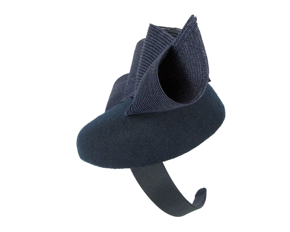Created in the heart of Melbourne by our experienced milliners, we are proud to present bespoke navy winter pillbox racing fascinator by Fillies Collection. Classic pillbox base embellished with PU wave and placed on the headband.