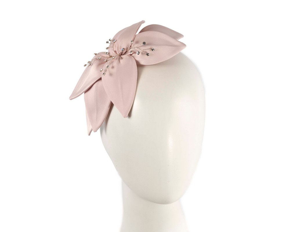 This stunning design pale pink fascinator features leaves from luxurious fabric topped with feathers. Our beautiful fascinators are hand made to order by Melbourne best millinery and we can make it in many colours, making it ideal headpiece for brides or flower girls. We can even make it from your own fabric for exact match with your outfit.