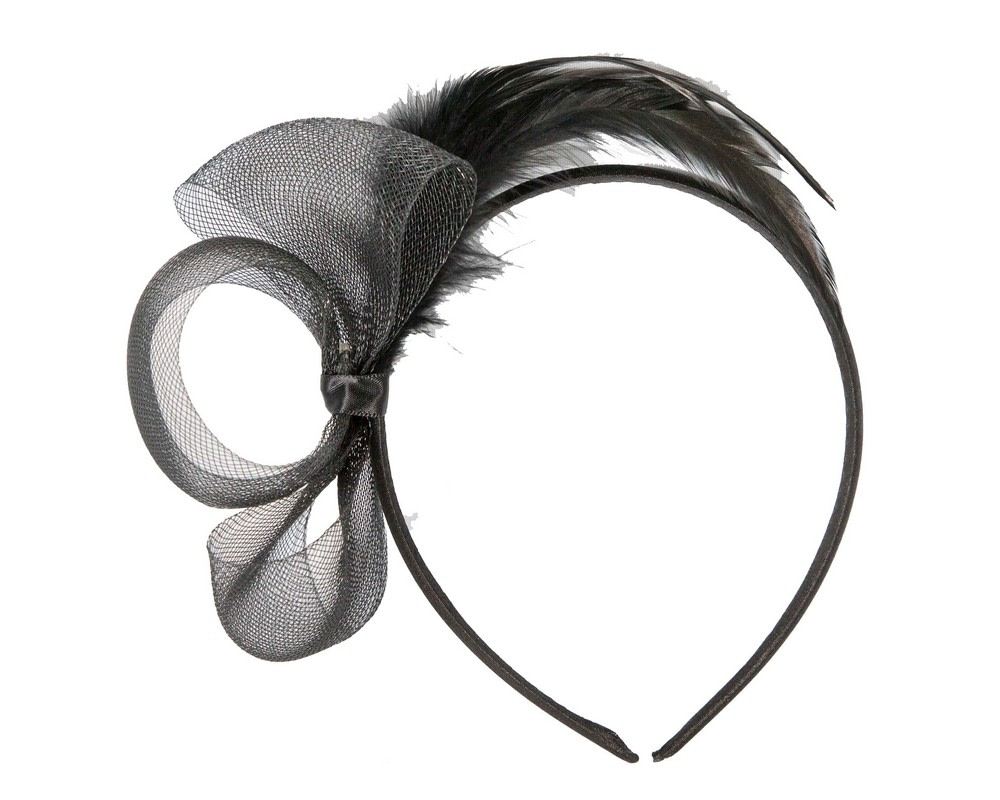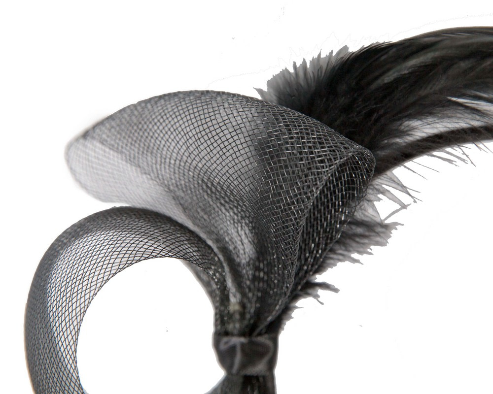 Small black crinoline fascinator with feathers. Headband for easy wear