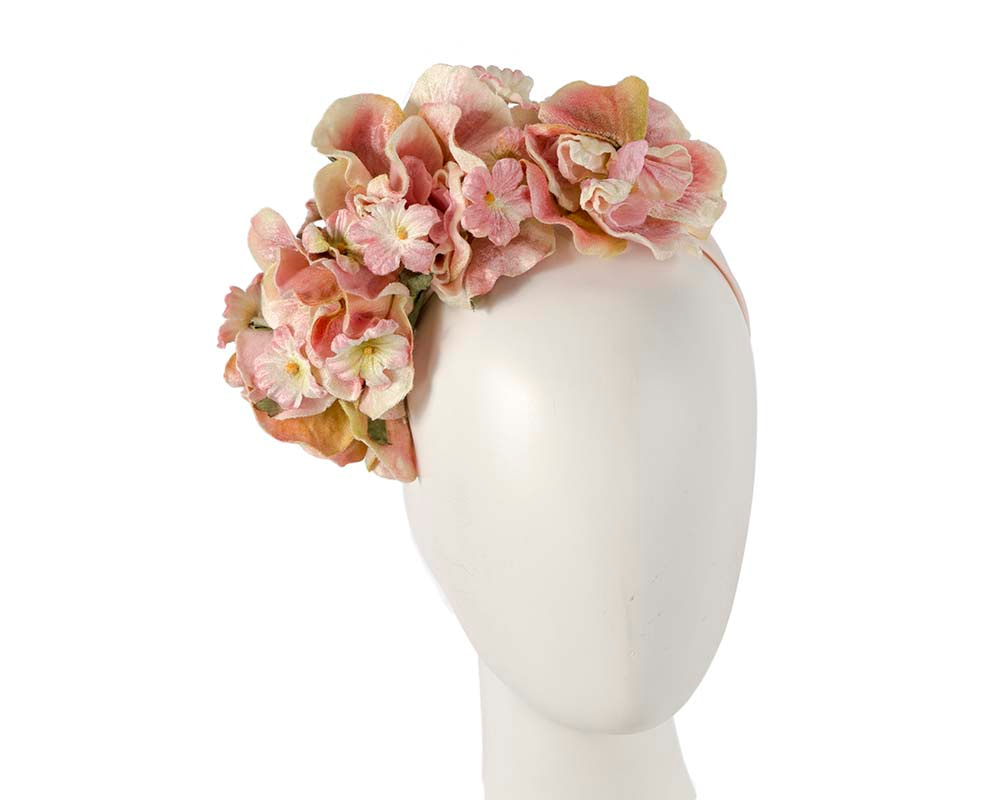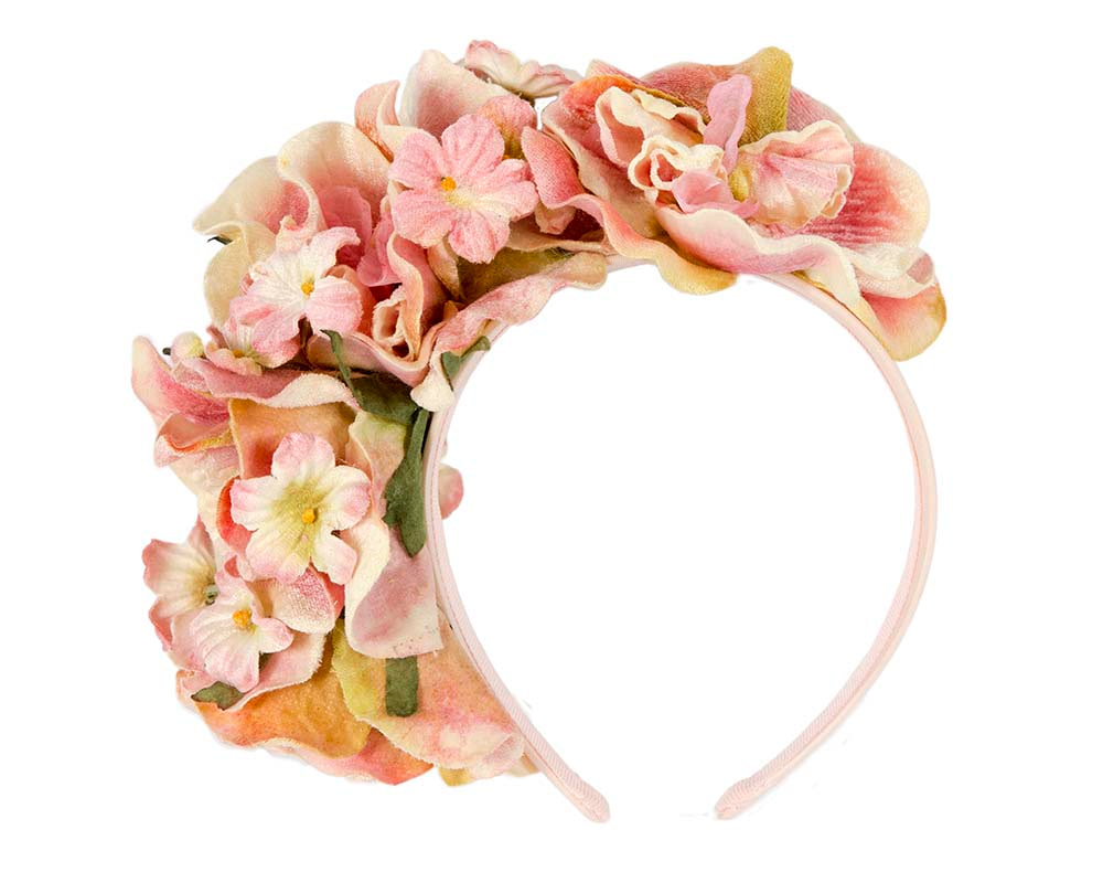 Hand-made pink shade silk and velvet flower bouquet arranged into a beautiful flower headband fascinator.
