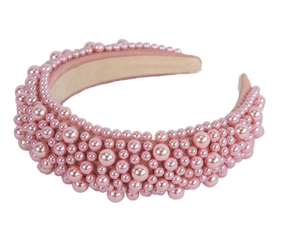 Pink headband fascinator covered in pearls. Perfect racing accessory.
