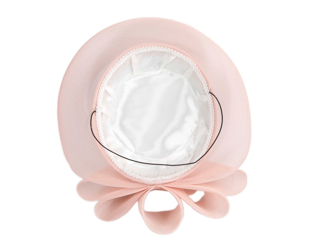 This stunning pink hat from our beautiful range of “mother of the bride”, evening, church and special occasion hats is hand made in Australia. This designer fashion hat is made to order and we can make it in any color to match your outfit.