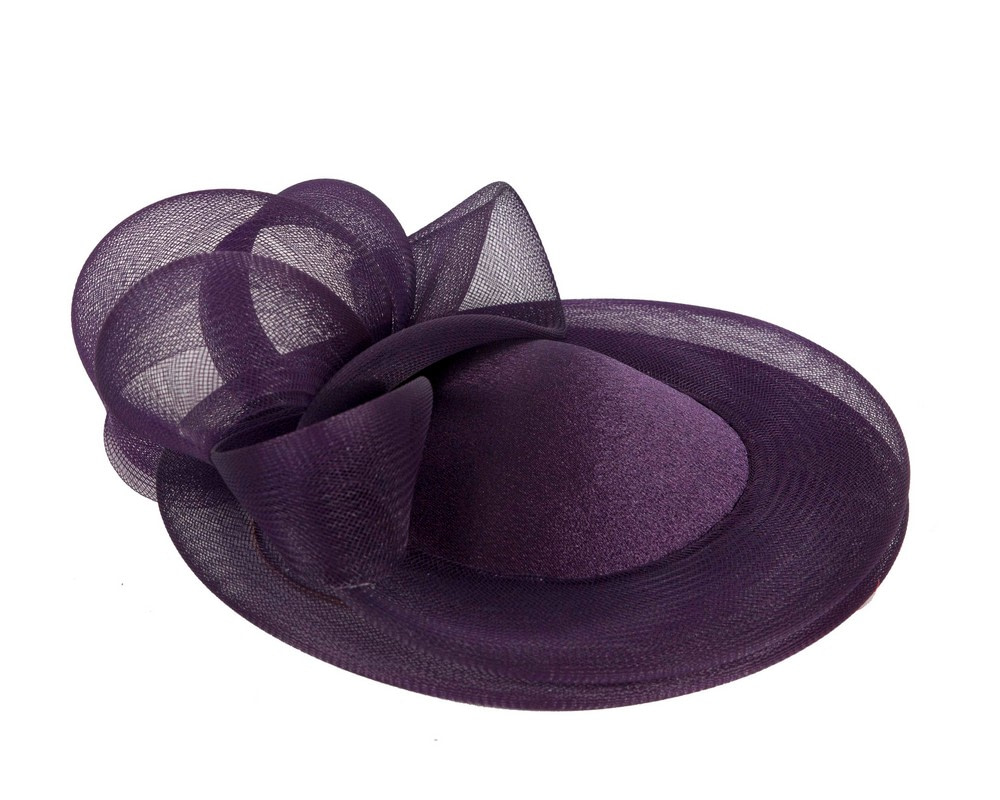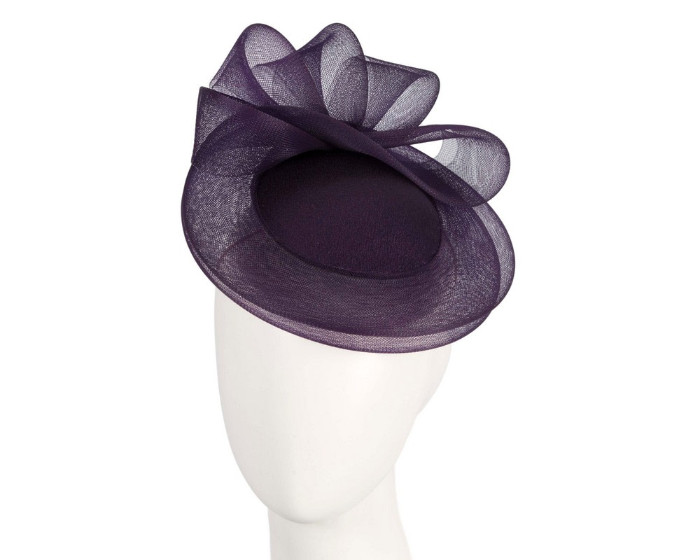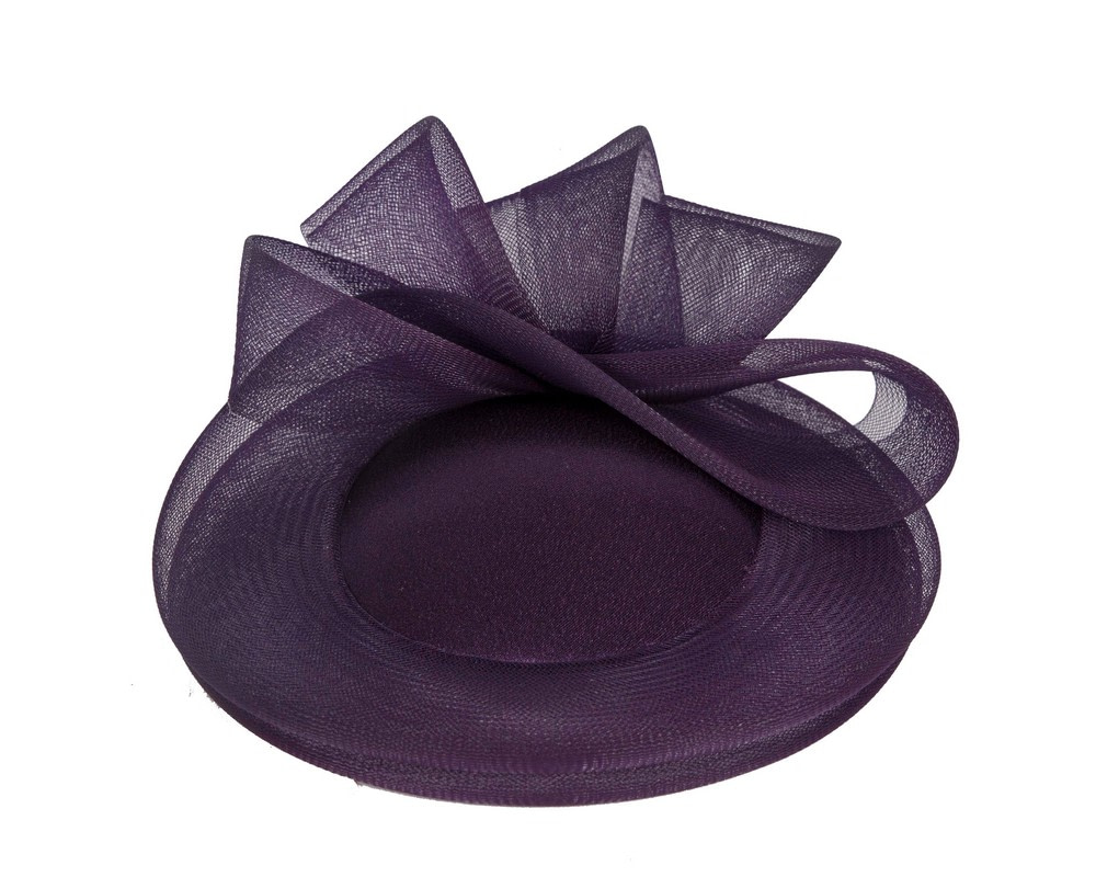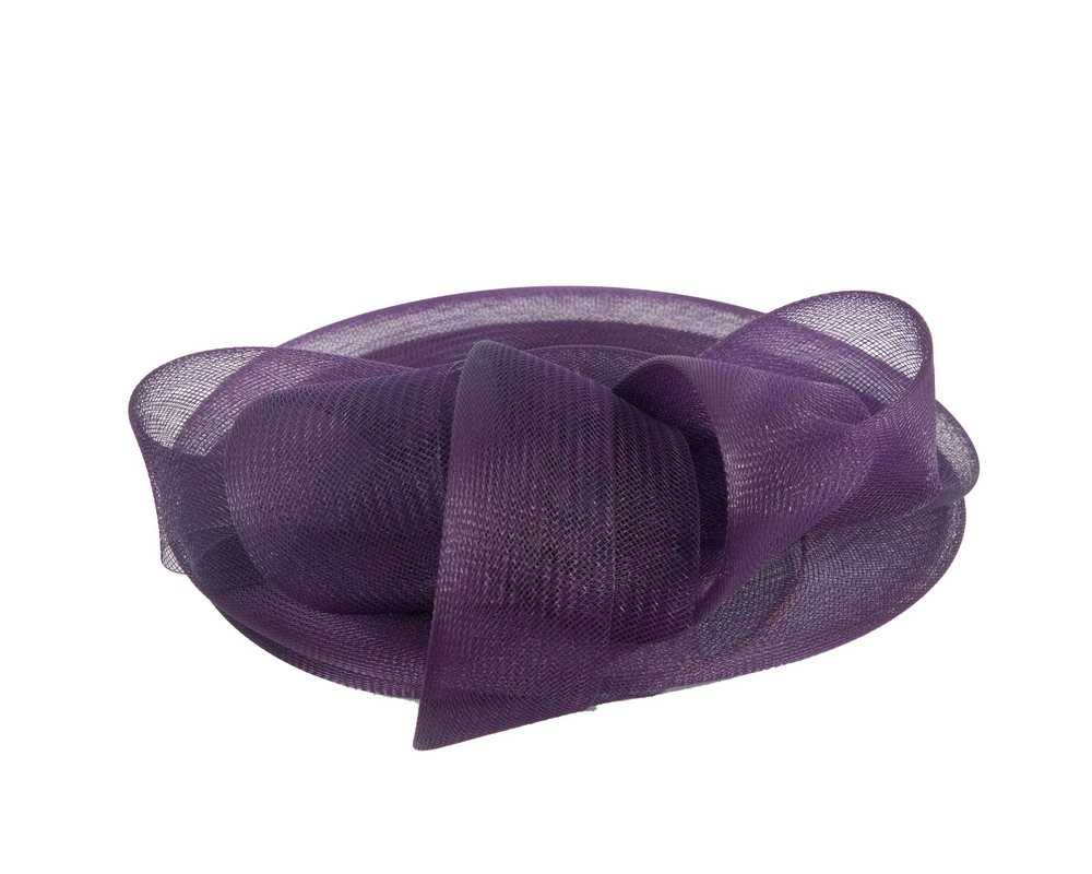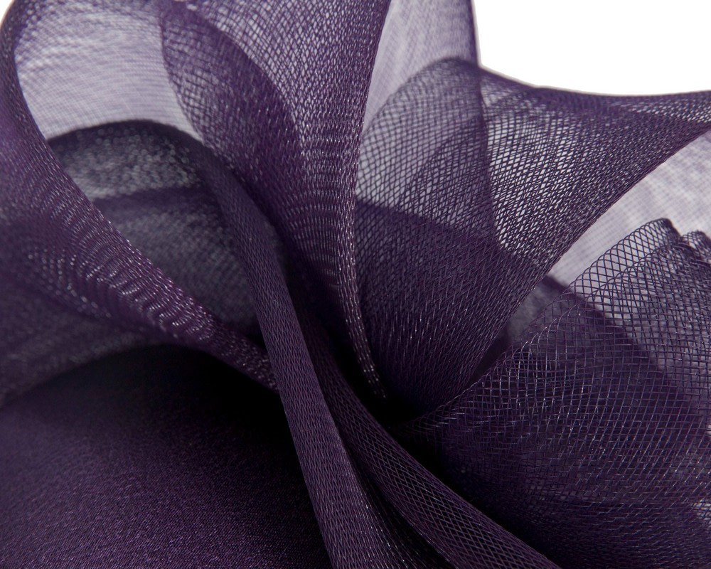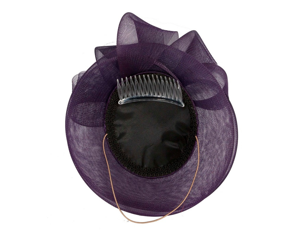This fancy purple cocktail hat from our beautiful range of cocktail hats, headpieces and special occasion hats is custom made from luxurious fabric with synthetic horse hair (crinoline) and comb for comfortable wearing.