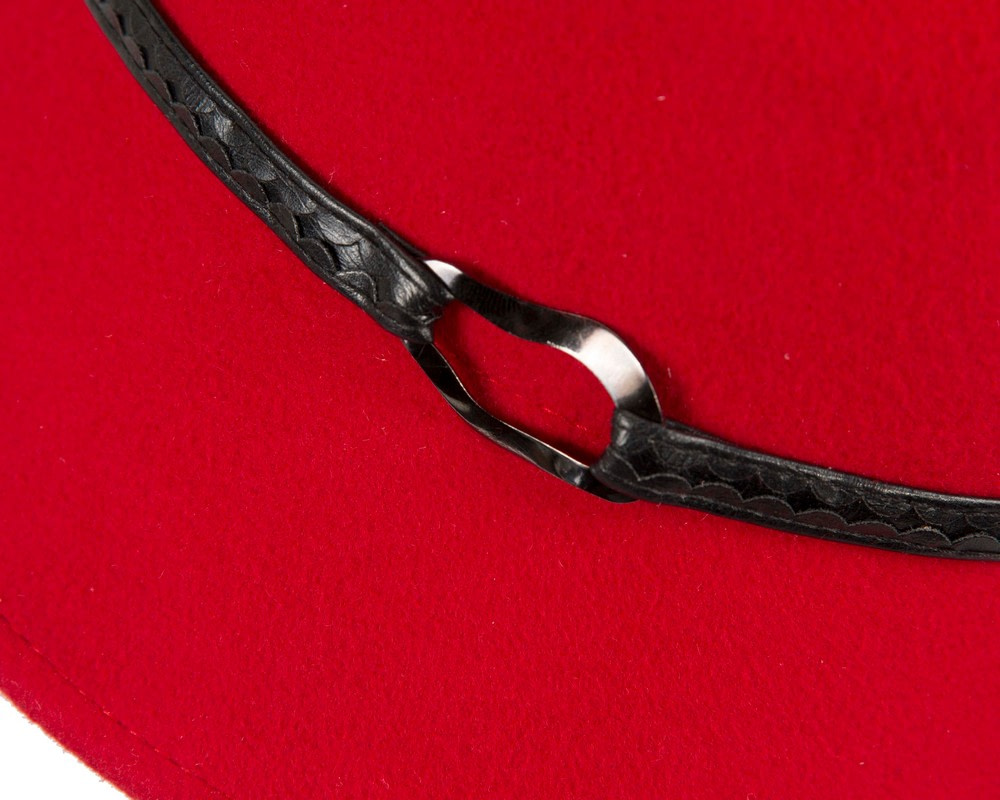 Classic red trilby hat. Made from pure wool felt, this hat is trimmed in Australia by our experienced milliners. Equally suitable for autumn/winter race meetings or stylish everyday wear.