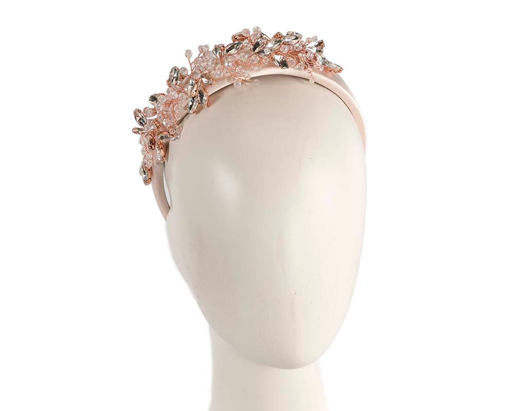 Rose Gold headband fascinator embellished with crystals. Perfect racing accessory.