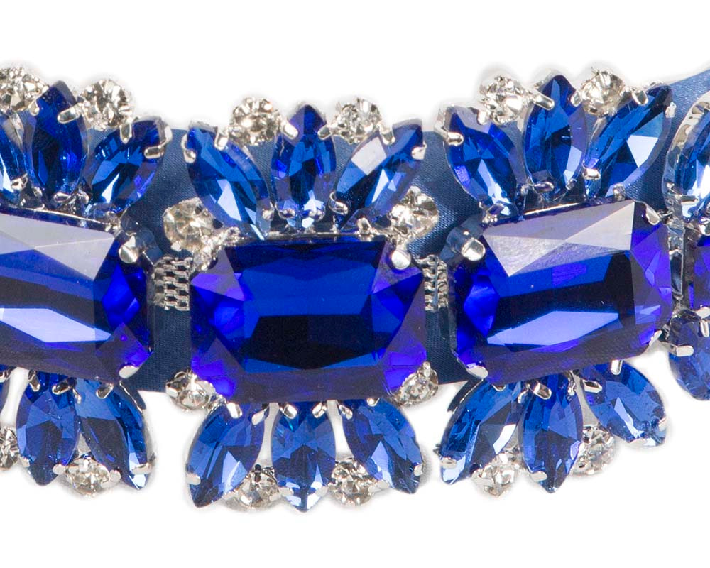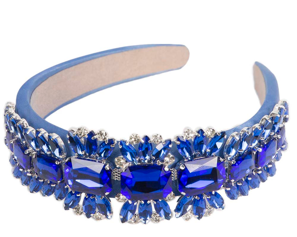 Royal blue headband fascinator covered in crystals. Perfect racing accessory.