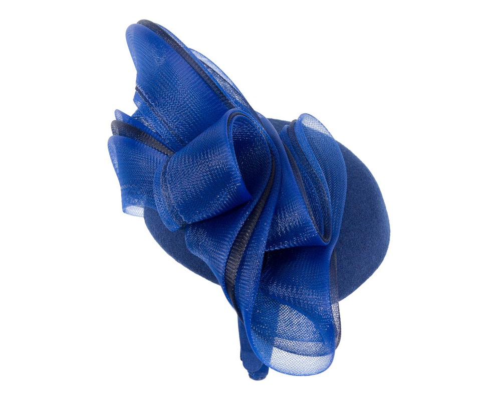 Layers of royal blue crinoline on the woolen pillbox fascinator