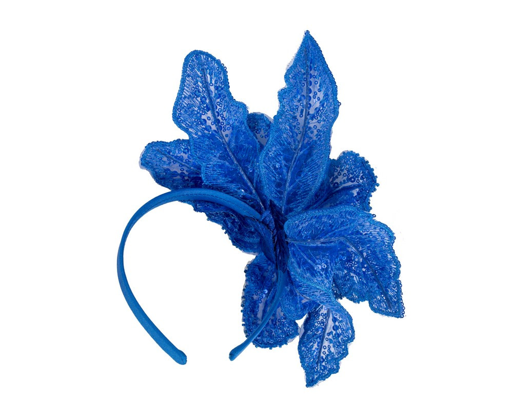Shiny royal blue lace fascinator by Fillies Collection