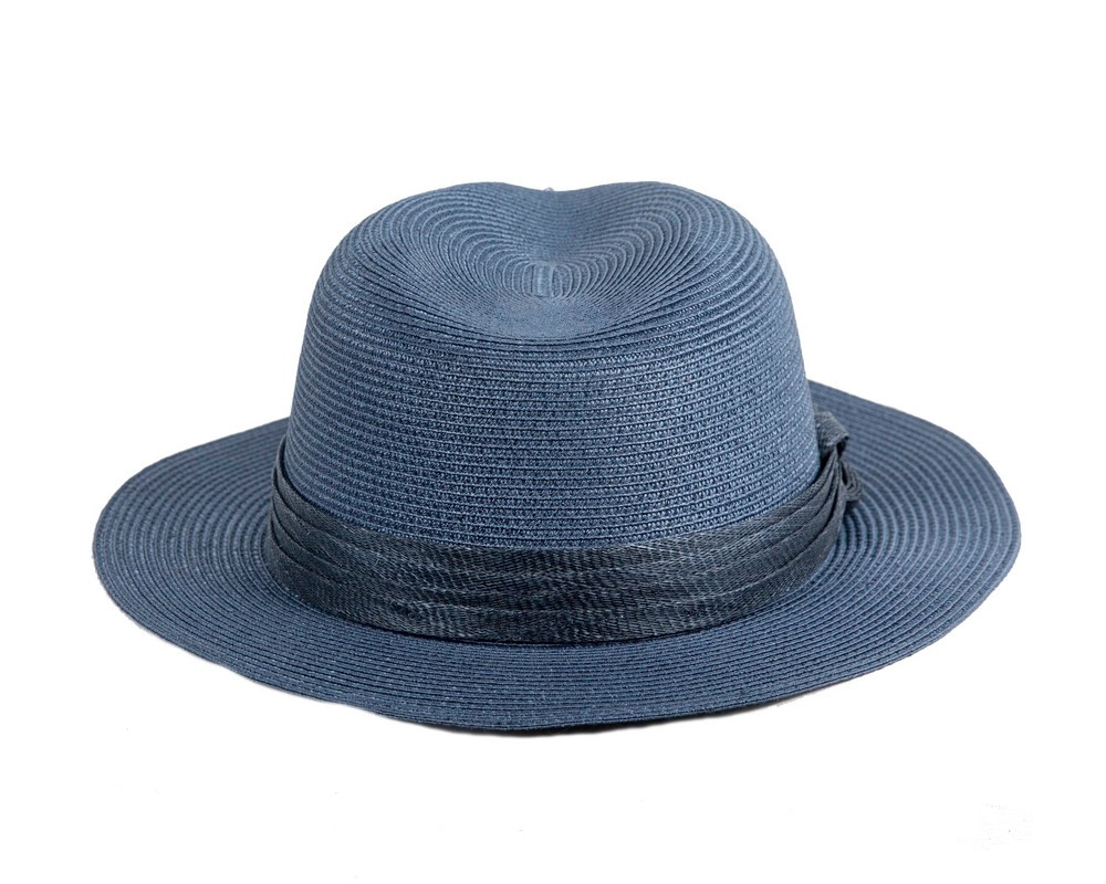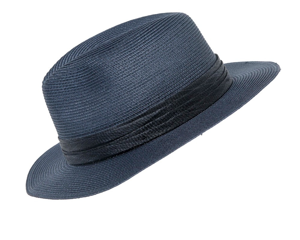 Unisex navy fedora hat made from quality soft PP braid.