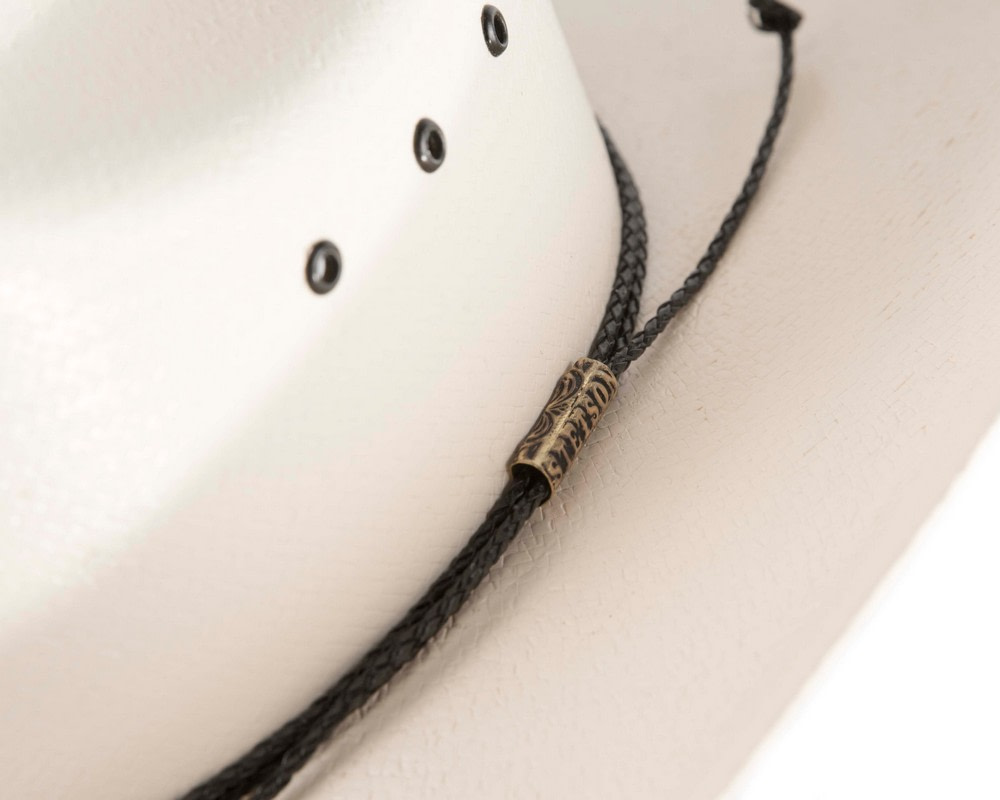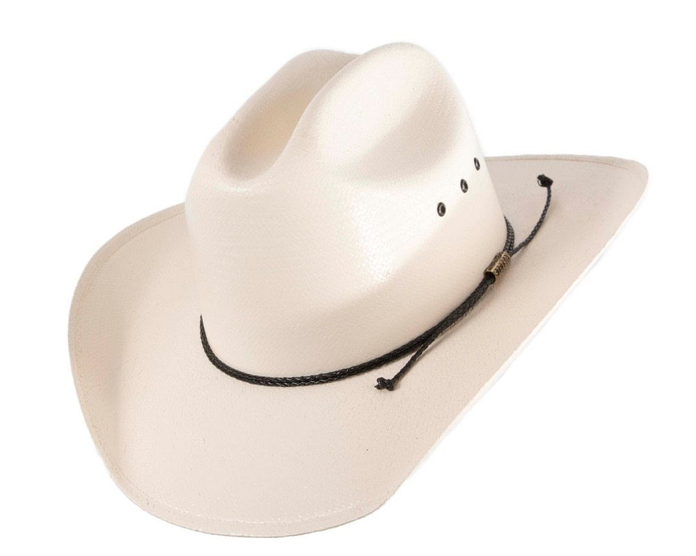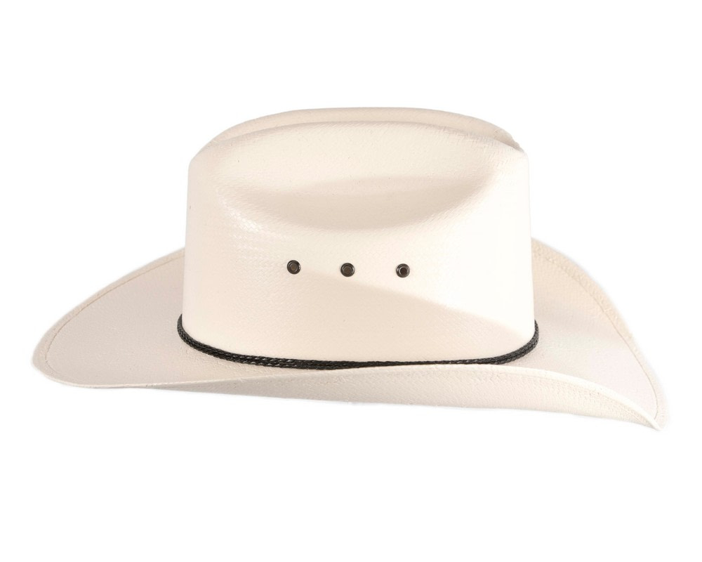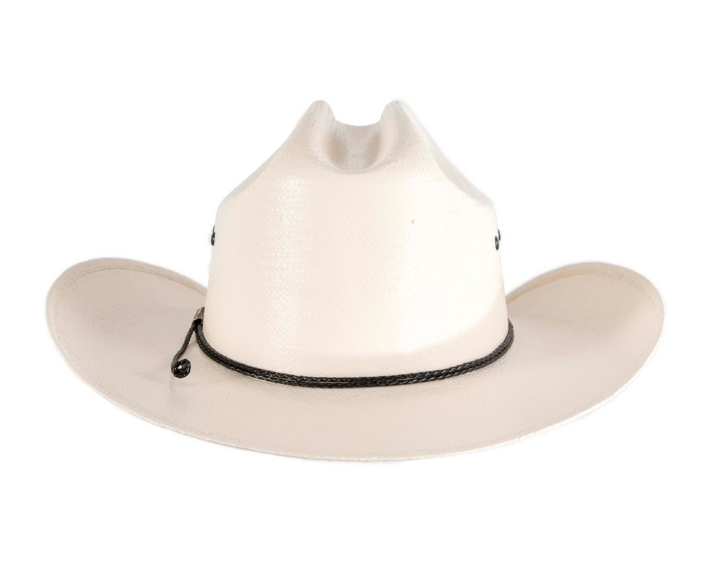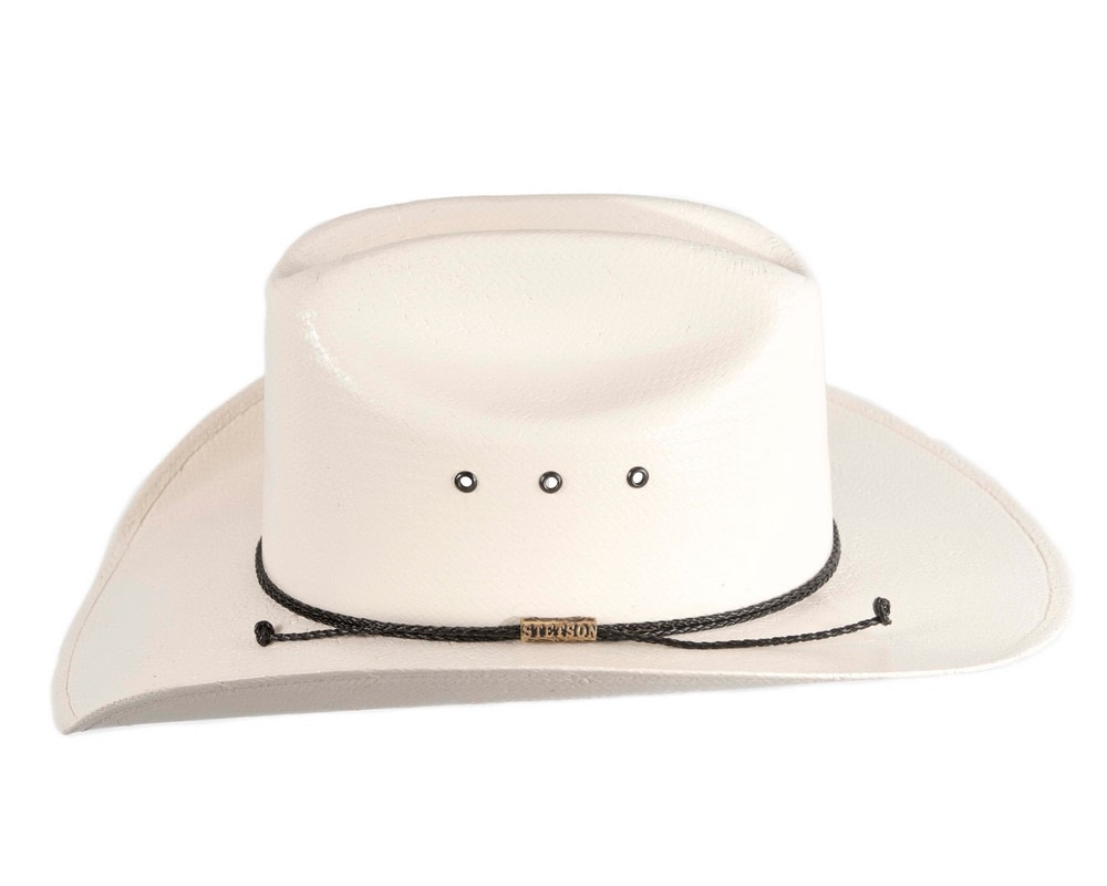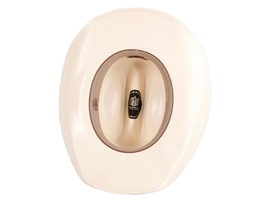 This Dakota hat is hand-crafted from Shantung Straw, firm structured finish to hold its western shape, featuring a black, braided hat band with Stetson tube detail and cattleman’s crown.