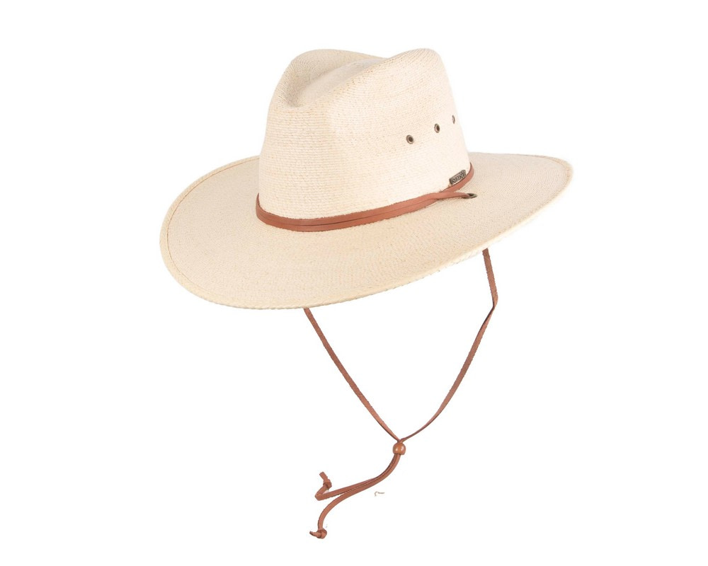 Built for hard work on a hot day. This hat is made with palm straw and features a pinch-front crown with eyelet ventilation. A chin strap keeps your hat in place throughout an active afternoon..
