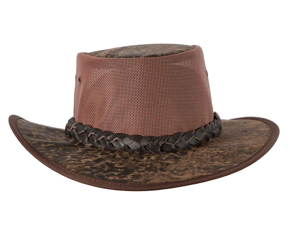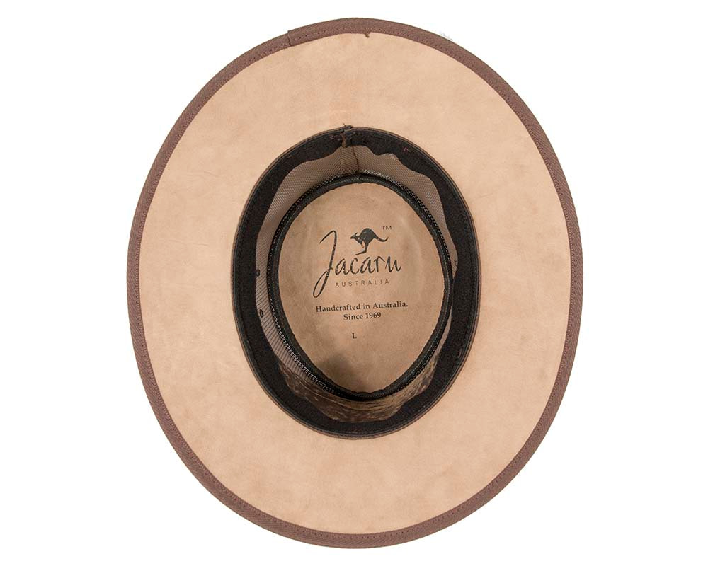 Stonewash Brown Australian Kangaroo Leather Cooler Jacaru Hat - Hats From OZ UK