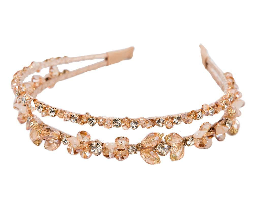 Gold double headband. Thin headband covered in shiny crystals.