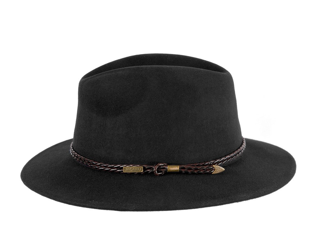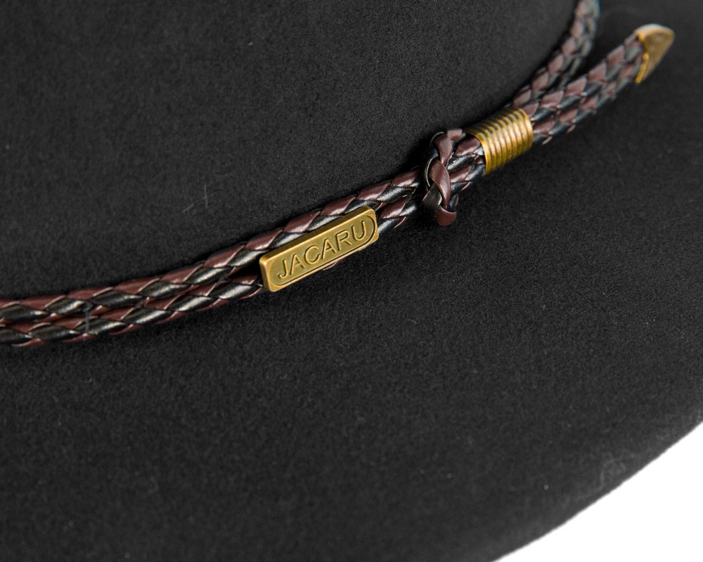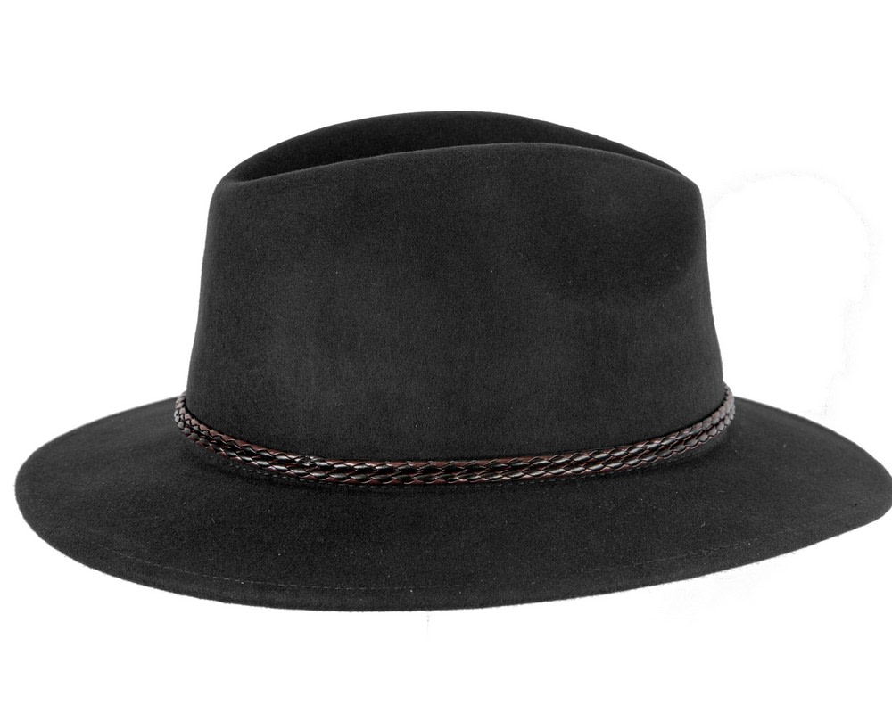 This black felt fedora hat is made from 100% Australian Wool. Featuring classic fedora shape with wide 7cm brim, hat is crushable, making it a perfect travel companion. This fedora hat is very versatile – cool in summer and warm in winter