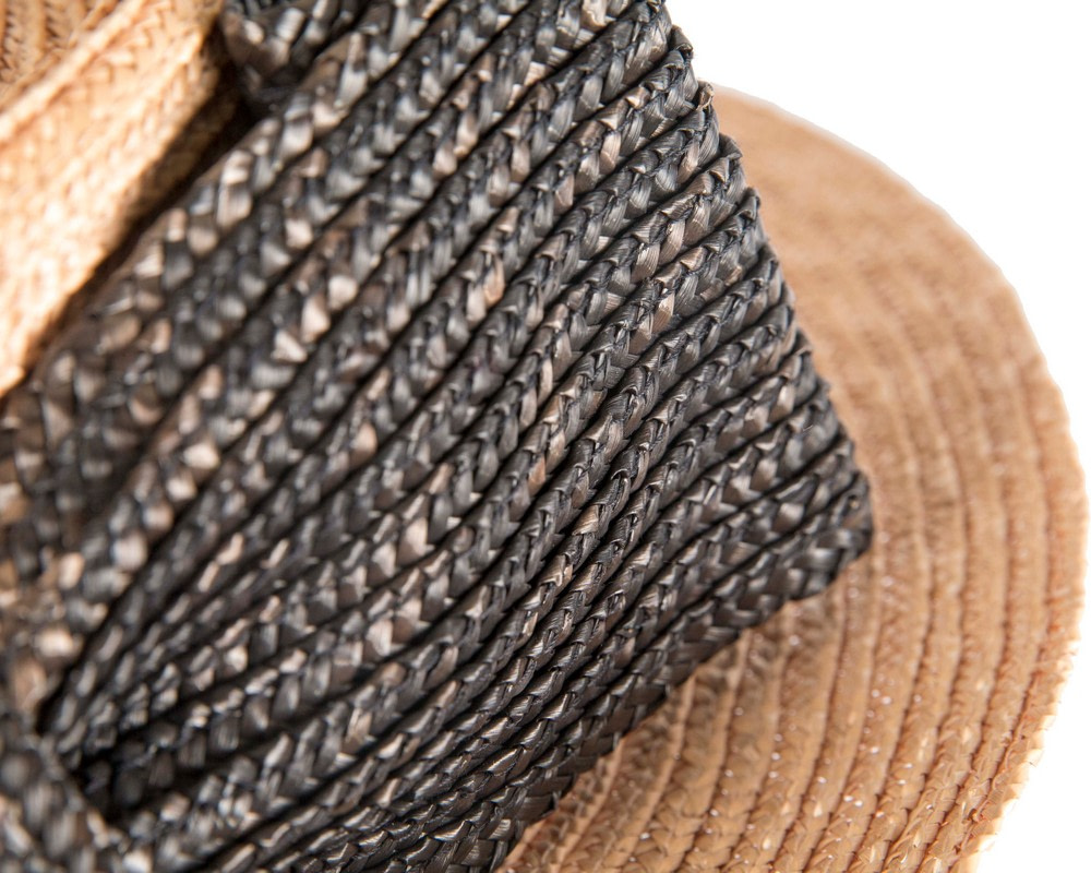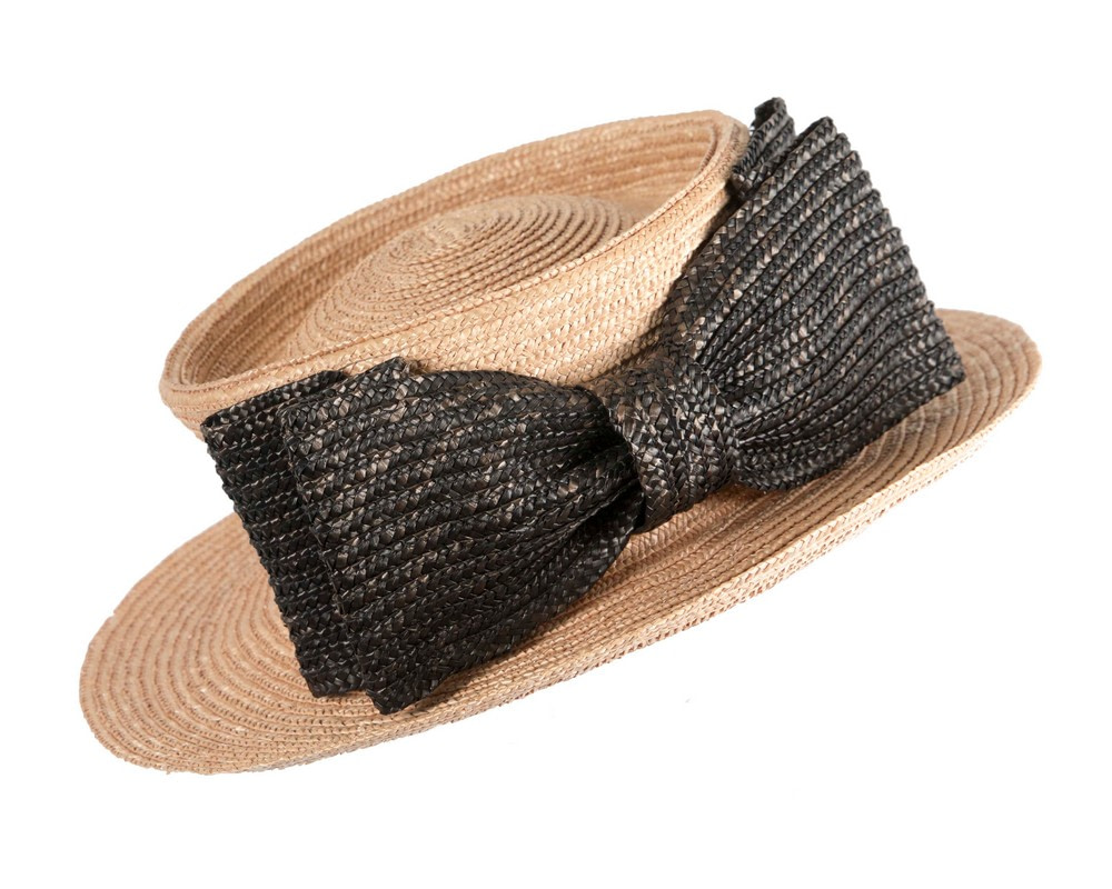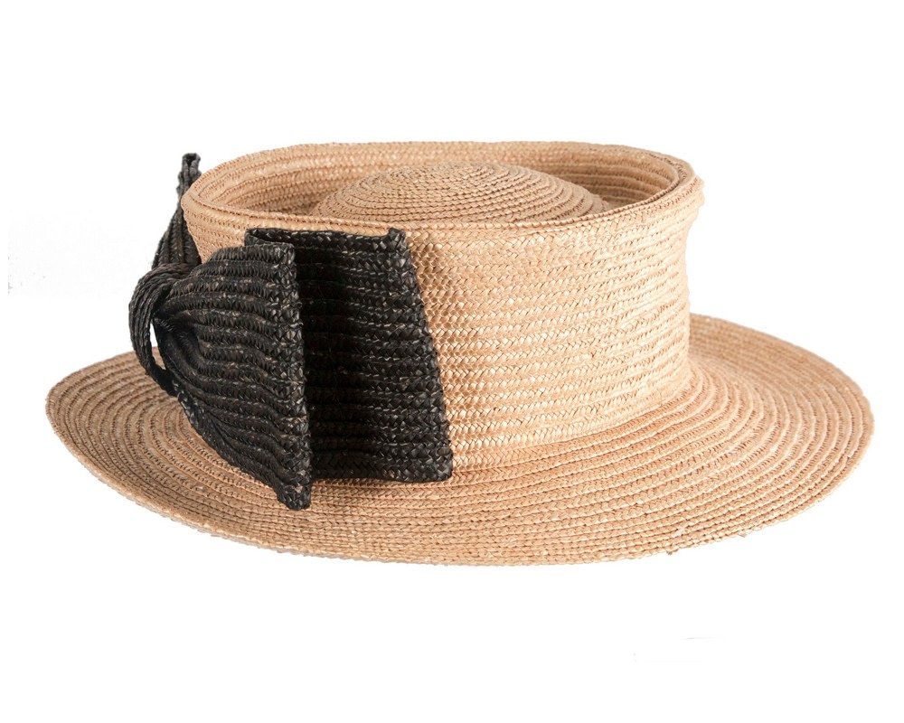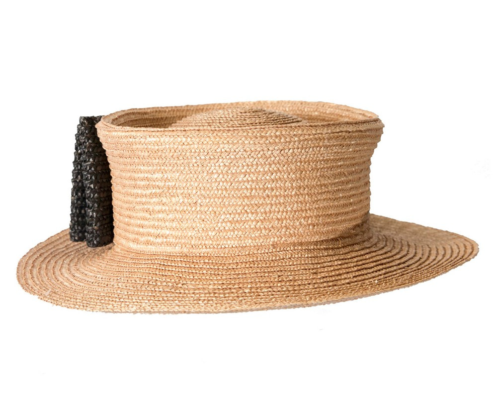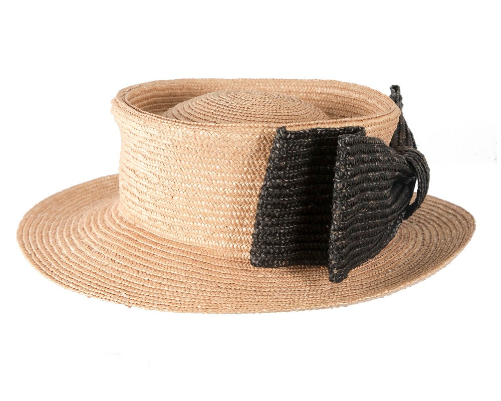 Straw boater hat with large contrast bow