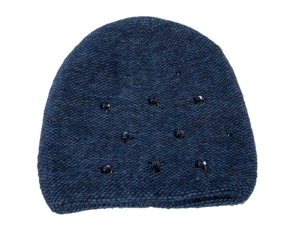 Elegant navy beanie with small pearls will warm you up in those cold winter months. Beanie is two layer and very soft and pleasant to feel.