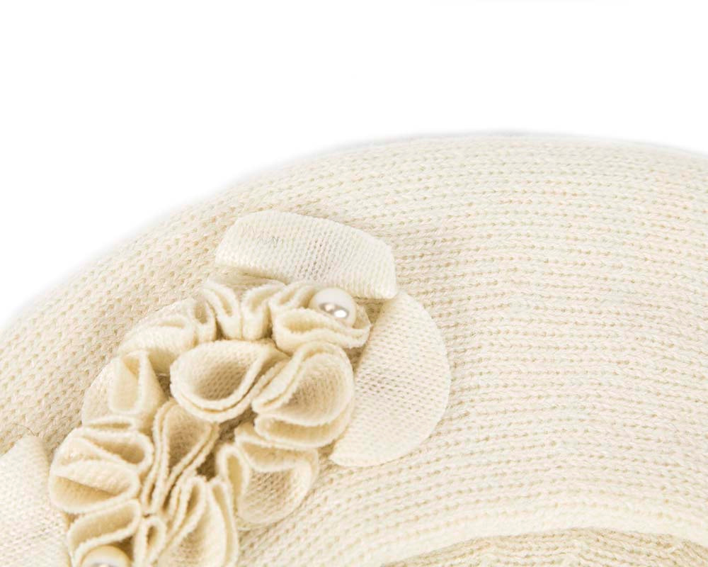 Elegant ivory cream beret with hand-made flower trim and pearls will warm you up in those cold winter months.